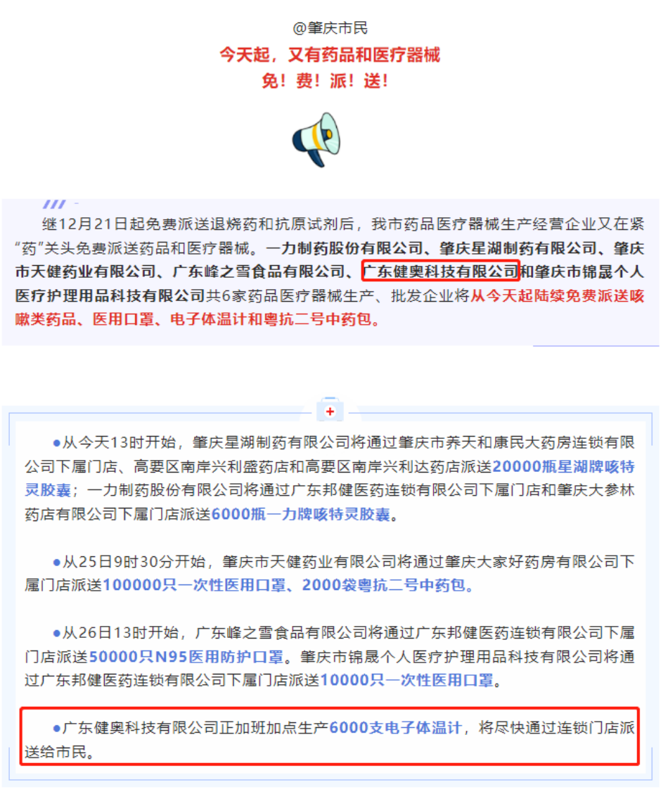 在新冠疫情防控期間,健奧科技一直積極響應各級政府的號召、配合防疫物資保供應的安排,為居民健康和疫情管理作出力所能及的貢獻。