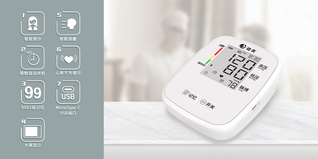 智能芯片,多重技術(shù)升級, 99組記憶數(shù)據(jù)精確掌握血壓變化